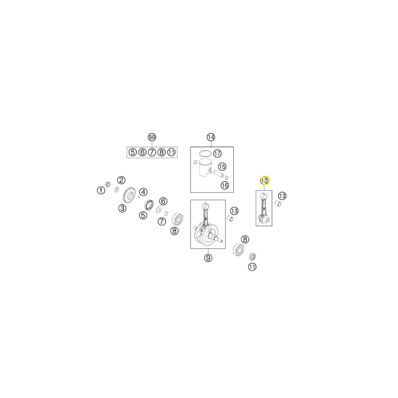 - Incluye: biela, rodamiento de biela, bulón de biela, y arandelas de ajustes si fuera necesario.