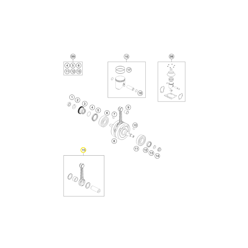 - Incluye: biela, rodamiento de biela, bulón de biela, y arandelas de ajustes.