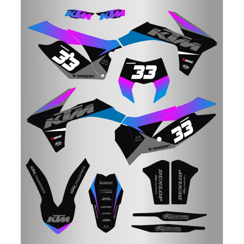 Kit de Adhesivos Ktm Exc/Excf 125-500 12-13 Azul/Rosa.