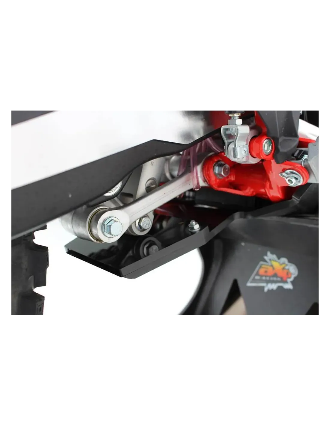 - Placa protectora extendida hacia arriba para proteger el varillaje del amortiguador.